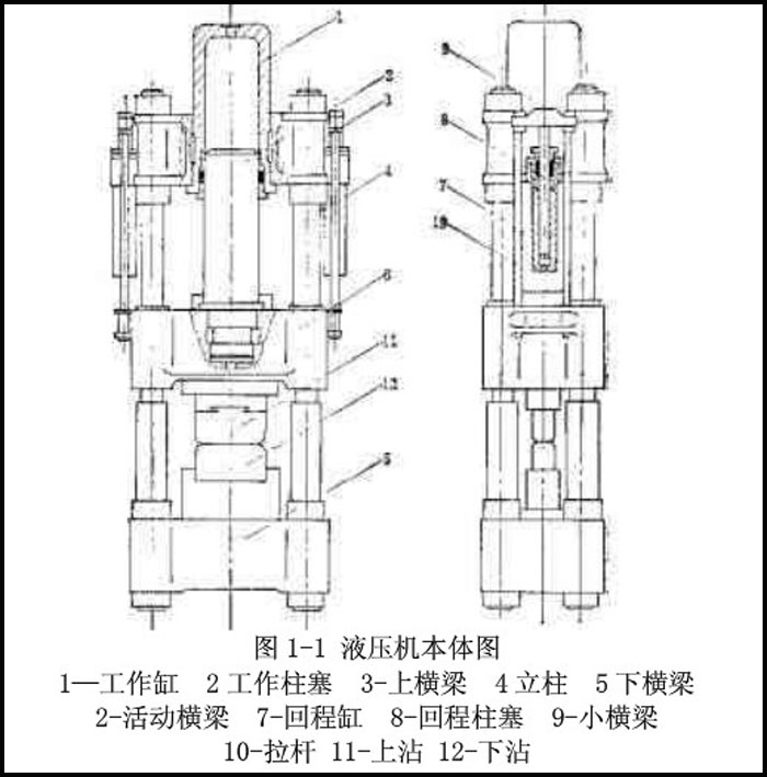 機架部上下橫梁,立柱組成。上下橫梁全部由整體鑄鋼件制作而成,上下橫梁用四根立柱由內外螺母連接,承受工作時的張力。